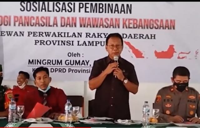 Lampung Tengah, Warta9.com – Ketua DPRD Provinsi Lampung Mingrum Gumay, SH, MH, menggelar Sosialisasi Pembinaan Ideologi Pancasila dan Wawasan Kebangsaan (IP-WK), di SMK Muhammadiyah Kecamatan Kalierjo Lampung Tengah, Senin (31/1/2022).