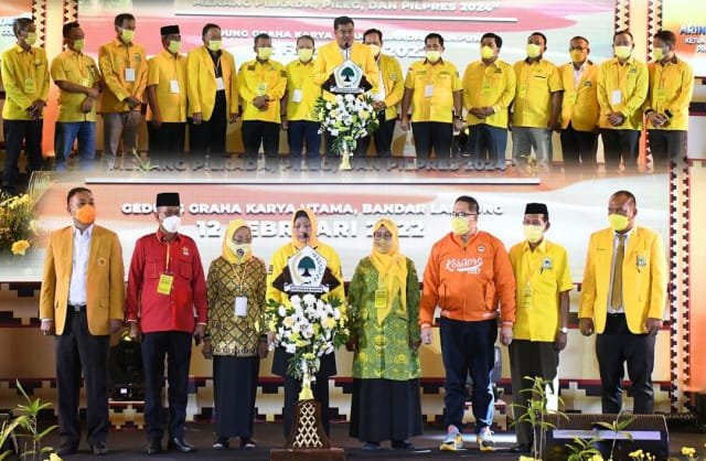 Dalam Rapimda dan Rakerda Partai Golkar Lampung, seluruh DPD Golkar Kabupaten/Kota dan organisasi sayap Partai Golkar menyatakan sikap mendukung penuh pencalonan Airlangga Hartarto sebagai Capres 2024.