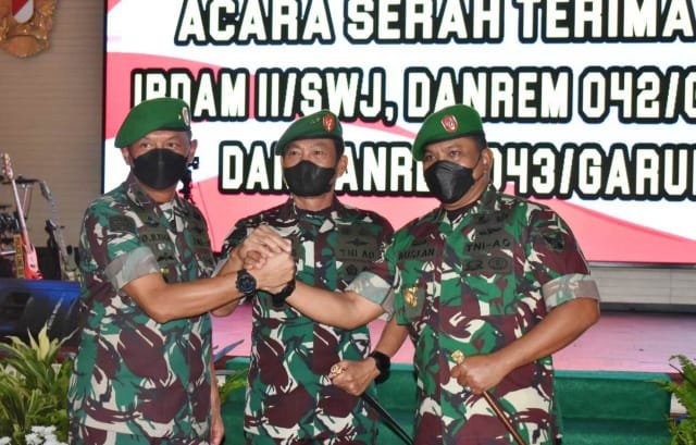 Mengawali amanatnya, Pangdam II/Swj Mayjen TNI Agus Suhardi., menyampaikan ucapan terima kasih dan penghargaan yang tulus kepada Brigjen TNI Drajad Brima Yoga, atas pelaksanaan tugas dan pengabdian yang begitu besar selama menjabat sebagai Danrem 043/Gatam. “Ucapan yang sama juga saya sampaikan kepada Ny. Epie Drajad Brima Yoga yang telah mendampingi suami selama berdinas di Kodam II/Swj, serta memimpin organisasi Persit Kartika Candra Kirana Koorcabrem 043/Gatam PD II/Swj dengan baik ,” kata Pangdam.