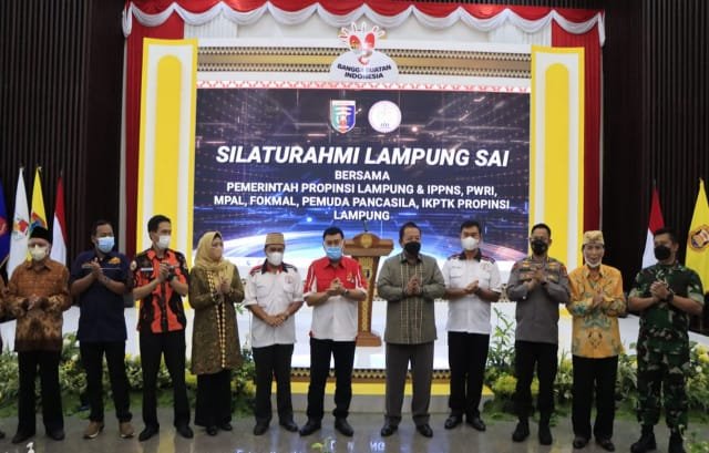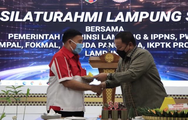 “Alhamdulillah, pada hari ini saya dapat bertemu dengan Keluarga Besar Lampung Sai, IPPNS, PWRI, MPAL, FOKMAL, Pemuda Pancasila, dan IKPTK Provinsi Lampung. Pertemuan hari ini hendaknya dapat juga kita jadikan sebagai wahana untuk meningkatkan silaturahmi diantara kita semua,” kata Gubernur.