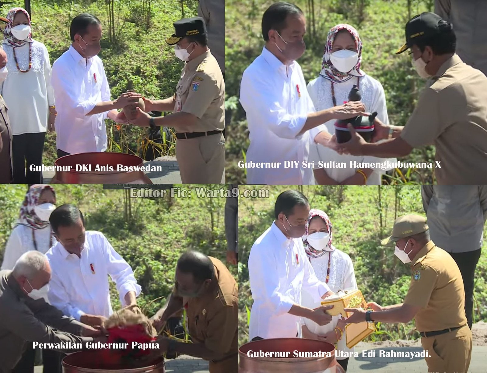 Kalimantan, Warta9.com – Salah satu proses dimulainya pembangunan Ibu Kota Baru (IKN) Nusantara, Gubernur DKI Jakarta Anies Baswedan menjadi gubernur pertama yang menyerahkan tanah dan air yang dibawa dari DKI Jakarta kepada Presiden Jokowi. Sedangkan di urutan kedua Gubernur Aceh H. Nova Iriansyah, untuk dimasukkan ke Bejana Nusantara di Titik Nol Ibu Kota Negara (IKN) baru di Nusantara, Kalimantan, Senin (14/3/2022).