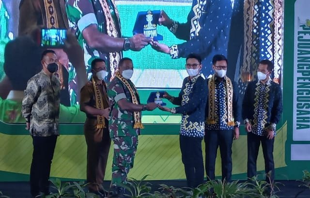 Dalam kesempatan ini dilakukan penyerahan plakat dari HIPMI Bandarlampung yang diserahkan oleh Deri Febogi dan Isfansa Mahani kepada Tole Daelami, Kasdim 0410/KTB Letkol Inf Imam Syafi’i dan dari DPRD Kota Rizaldi Adrian. (W9-jam)
