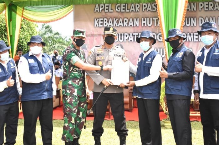 Sementara Komandan Kodim 0402 OKI/OI Letkol INF Hendra Saputra, S.Sos. MM., M.I.POL bersama Kapolres OKI AKBP. Diliyanto, SH, MH mengatakan apel siaga yang dilaksanakan pada hari ini tidak sekedar gelar pasukan namun bentuk kesigapan berbagai elemen untuk menghadapi bencana karhutlah.