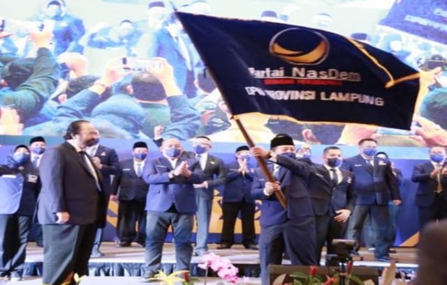 Ketua Umum (Ketum) Partai NasDem Surya Paloh resmi melantik Pengurus DPW NasDem Lampung periode 2022–2024 yang dikomandoi Herman HN, Sabtu, 26 Maret 2022, di Novotel Lampung.