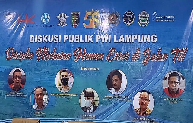 Bandarlampung, Warta9.com – Mengantisipasi kecelakaan dan kelalaian manusia di jalan tol, Persatuan Wartawan Indonesia (PWI) Lampung bersama PT Hutama Karya ruas Bakauheni -Terbanggi Besar (Bakter) mengadakan diskusi publik.