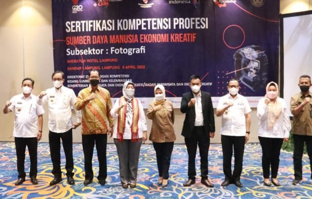 Bandarlampung, Warta9.com – Wakil Gubernur Lampung Hj. Chusnunia Chalim, membuka Sertifikasi Kompetensi Profesi Fotografi di Raflesia Ballroom Hotel Sheraton, Bandarlampung, Rabu (6/4/2022).