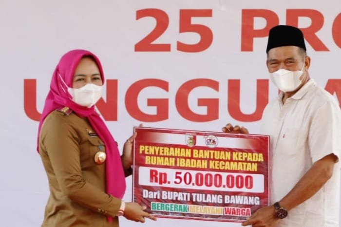 Penawar Aji, Warta9.com – Memasuki puasa ke sepuluh hari bulan sucu ramadhan 1443 hijriah tahun 2022 Masehi. Bupati Tulang Bawang Dr. Hj. Winarti, SE, MH roadsow 4 tahun perjalanan 25 program Bergerak Melayani Warga (BMW) Pro-Rakyat dan menggelar pasar murah serta penyerahan beberapa bantuan di Kampung Sumber Asri, Kecamatan Penawar Aji, Kabupaten Tulang Bawang Lampung, Selasa (12/04/2022).
