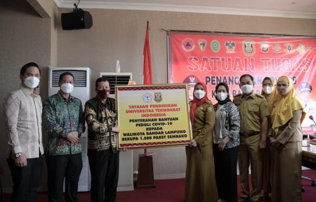 Rektor Universitas Teknokrat Serahkan Bantuan Paket Sembako kepada Walikota Bandarlampung