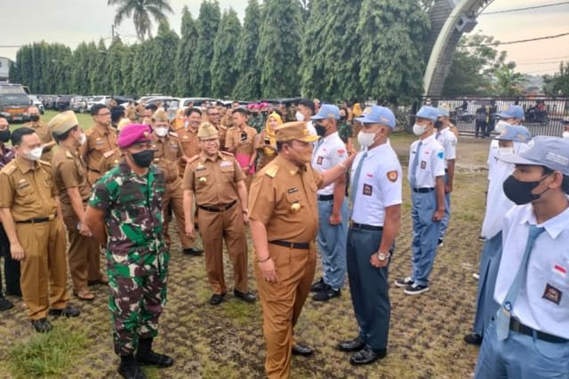 Bandarlampung, Warta9.com – Wakil Komandan Brigade Inafanteri (Wadanbrig) 4 Marinir/BS Letkol Marinir Anugerah Auliadi Santoso mengikuti Upacara Pembukaan Latihan Dasar Kepemimpinan OSIS SMA Se-Provinsi Lampung TA 2022 di lapangan Kantor Gubernur Provinsi Lampung di Kec. Telukbetung Selatan, Kota Bandarlampung, Senin (13/06/2022).