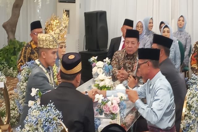 Bandarlampung, Warta9.com – Gubernur Lampung Ir. H. Arinal Djunaidi menjadi saksi pernikahan putri H. Ismet Roni. Sedangkan saksi mempelai pria Bupati Lampung Timur Drs. H. M. Dawam Raharjo.