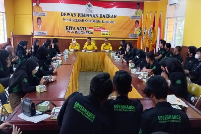 Dalam Safari Politik ke Partai Golkar, Kamis (23/6/2022) rombongan mahasiswa Jurusan Ilmu Pemerintahan diterima oleh Sekretaris DPD Partai Golkar Bandarlampung Ali Wardana, Ketua Fraksi Partai Golkar DPRD Bandarlampung Benny HN Mansyur, Heti Friskatati dan sejumlah pengurus Golkar.