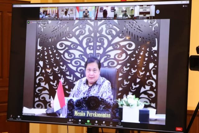 Menko Perekonomian Airlangga Hartarto memimpin Rakor Pembahasan Perkembangan Kasus Covid-19 dan Evaluasi PPKM di Luar Jawa Bali. (foto : ist)