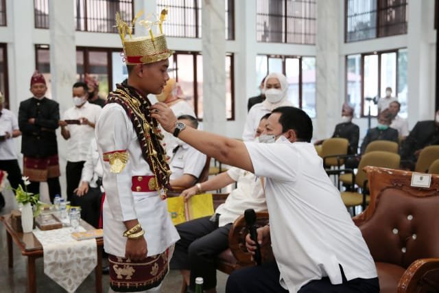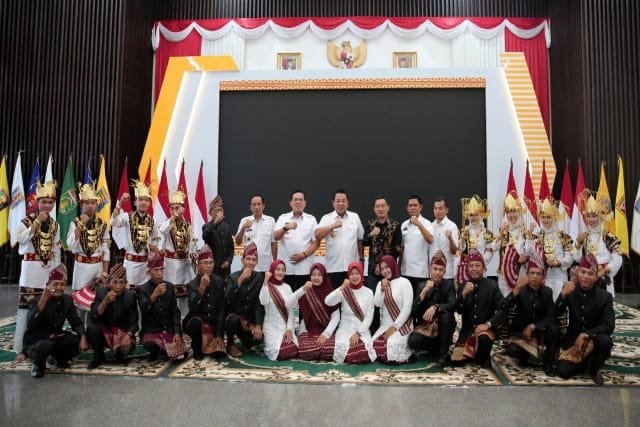 Dukungan Gubernur Lampung Arinal Djunaidi terhadap tim Tari Melinting saat menerima audiensi dari Tokoh Lampung Timur, di Mahan Agung, Bandarlampung, Rabu (27/7/2022).