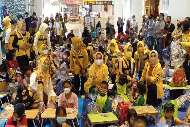 Bersama Ikatan Istri Partai Golkar (IIPG) Provinsi Lampung, Lions Internasional, Lions Club, Riana Sari Arinal juga Bunda PAUD Lampung memberi semangat 130 anak TK/PAUD dalam lomba mewarnai di Trans Mart Bandarlampung, Sabtu (23/7).