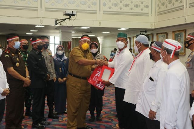 Selain itu, Gubernur Arinal didampingi Kapolda Lampung Irjen Pol Dr. Akhmad Wiyagus, Ketua DPRD Lampung Mingrum Gumay, Kajati Lampung Nanang Sigit Yulianto, SH, MH, Kasrem 043/Gatam, secara simbolis memberikan tali asih kepada perwakilan mantan anggota Khilafatul Muslimin.