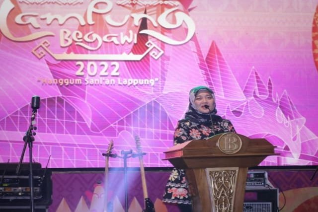 Bandarlampung, Warta9.com — Wakil Gubernur Lampung Hj. Chusnunia Chalim, membuka Lampung Begawi 2022 dan Pencanangan Gerakan Nasional Pengendalian Inflasi Pangan (GNPIP), di Lapangan Enggal Bandarlampung, Jumat (19/8/2022) malam.