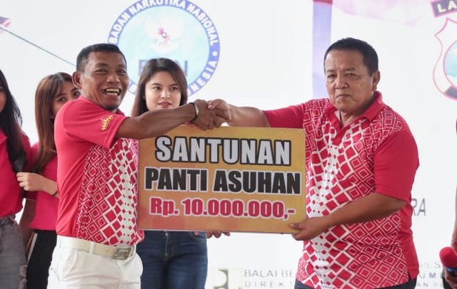 Dalam kesempatan ini juga ada penyerahan santunan untuk anak yatim dari para golfer Lampung. (W9-jam)