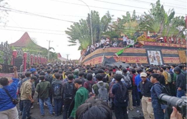 Ketua PMII Bandarlampung, Muhammad Julianto, menjelaskan awalnya mereka benar-benar ingin, berdiaog. Tapi, upaya itu buntu karena tidak ada satu pun anggota DPRD yang muncul. Akibatnya, emosi massa tersulut. (W9-jm)