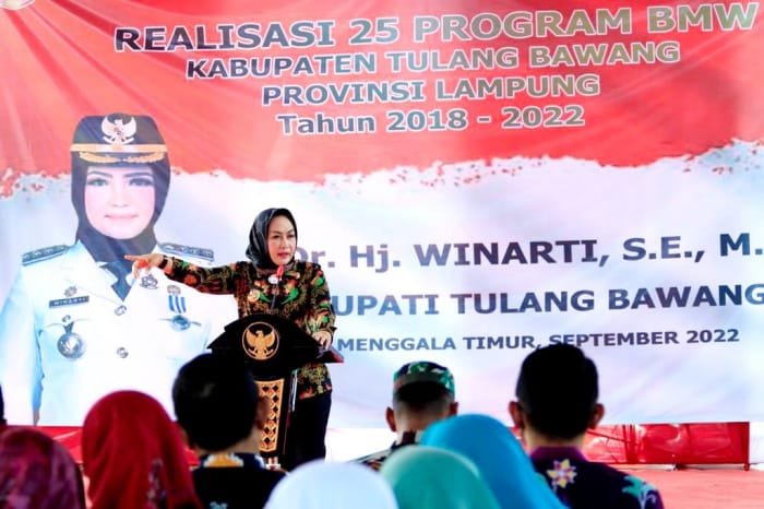 Menggala, Warta9.com – Bupati Tulang Bawang Hj. Winarti, SE, MH gelorakan semangat gotong royong demi menyukseskan 25 program unggulan Bergerak Melayani Warga (BMW) Pro-Rakyat.