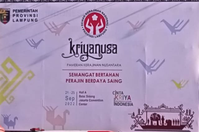 Bandarlampung, Warta9.com — Provinsi Lampung mendapat kepercayaan Dewan Kerajinan Nasional (Dekranas) pusat menjadi ikon dalam Pameran Kriya Nusa Tahun 2022, di Hall A Jakarta Convention Center (JCC) Jakarta, pada 21-25 September 2022.