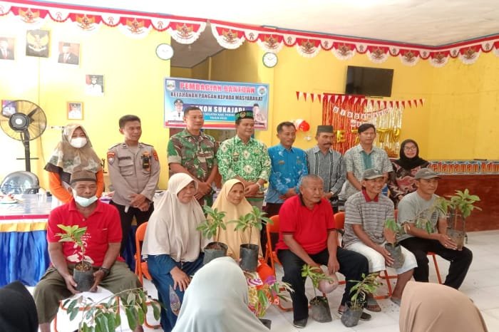 Pemberian bantuan bibit pohon itu berlangsung di balai pekon setempat dan dihadiri Peratin (Kepala Desa) Sukajadi, perwakilan kecamatan krui selatan dan undangan lainnya.