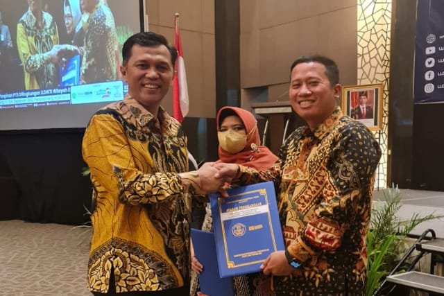 Penghargaan diberikan langsung Kepala LLDikti Wilayah II Prof. Dr. Ishak Iskandar pada rapat kerja pimpinan perguruan tinggi swasta LLDikti Wilayah II di Hotel Novotel, Bangka-Belitung, Sabtu (3/9/2022).