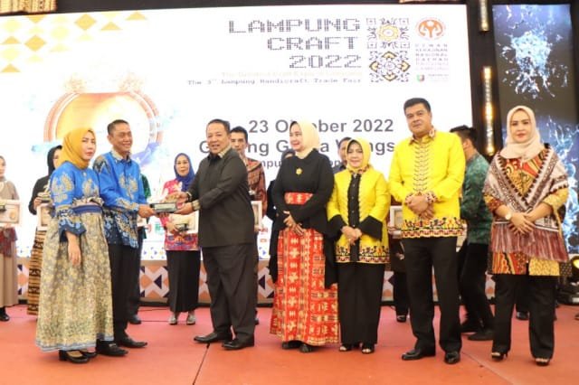 Pada Kesempatan tersebut Ketua Dekranasda Provinsi Lampung mengumumkan bahwa ikon Lampung Craft Tahun 2023 adalah Kabupaten Lampung Tengah. (W9-jam)