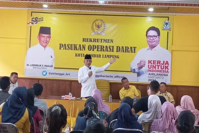 Anggota DPR RI dari Partai Golkar ini memperkenalkan diri kepada kader Partai Golkar yang baru direkrut. Lodewijk juga menyampaikan bahwa dirinya akan terus melakukan pertemua dengan masyarakat Lampung.