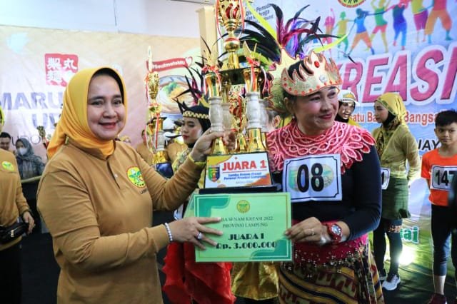 Bertajuk “Dengan Lomba Senam Kreasi, Mari Kita Bersatu Bangun Bangsa”, lomba ini diikuti oleh 10 perwakilan Perwosi Kabupaten/Kota se-Provinsi Lampung.