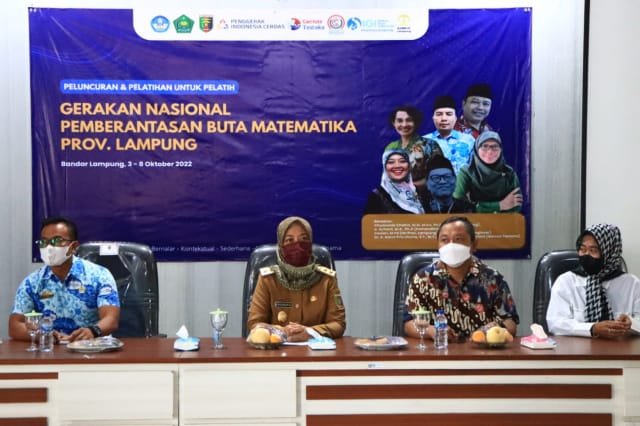 Bandarlampung, Warta9.com – Wakil Gubernur Lampung Hj. Chusnunia, membuka kegiatan Training of Trainer (ToT) sekaligus melaunching Gerakan Nasional Pemberantasan Buta Matematika (Gernas Tastaka) Provinsi Lampung, di Balai Penggerak Guru, Senin (3/10/2022).