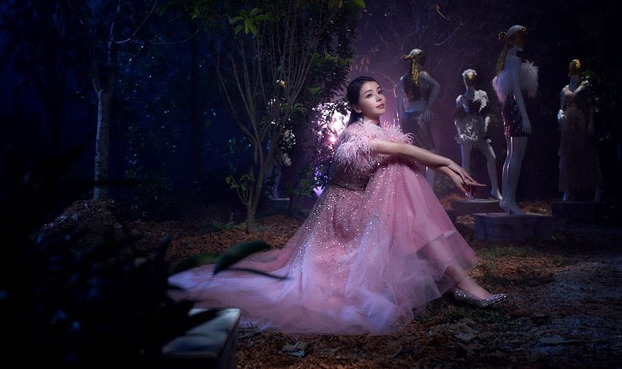 Another set of stunning motion and still images is also being released today together with Vogue Hong Kong to connect the animated video back to real life, presenting a determined Tia in a pink Jenny Packham princess dress running away from glamorously-dressed mannequins.
