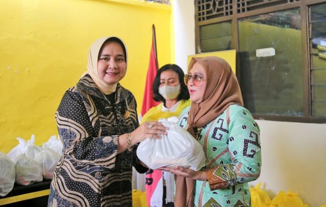 Bandarlampung, Warta9.com — Ketua Lembaga Koordinasi Kesejahteraan Sosial (LKKS) Provinsi Lampung Riana Sari Arinal, menyerahkan bantuan 450 paket sembako, Program Siger (Saatnya Ikut berGerak untuk Rakyat).