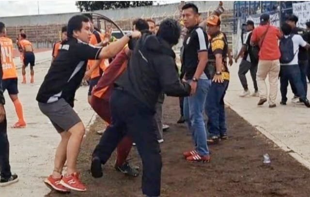 Kericuhan terjadi di Stadion Way Halim yang dilakukan oleh pemain Sepakbola Kota Metro. (foto : ist)