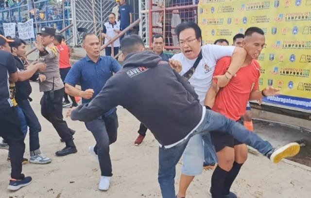 Tapi, laga cabang sepakbola yang berlangsung di Stadion Sumpah Pemuda PKOR Way Halim, Bandarlampung berakhir ricuh, Sabtu (3/12/2022). Kericuhan terjadi saat laga antara Kota Metro melawan Lampung Tengah. Panitia pun menjatuhkan sanksi kalah WO bagi tim Sepakbola Metro. “Seluruh perangkat pertandingan, manajer, dan official, sepakat memberi sanksi. Namun untuk sanksi selanjutnya, akan diputus oleh Komite Disiplin PSSI,” kata Ketua Asprov PSSI Lampung, Edy Syamsu.