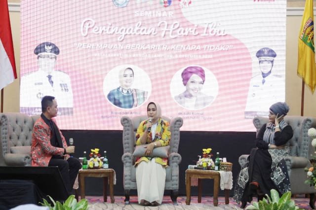 Bandarlampung, Warta9.com – Ketua TP. PKK Provinsi Lampung Riana Sari Arinal menjadi narasumber pada Seminar dalam rangka Peringatan Hari Ibu ke-94 tahun 2022 dengan tema ‘Perempuan Berkarier, Kenapa Tidak?’ bertempat di Balai Keratun Lt.III, Senin (5/12/2022).