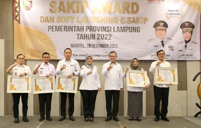 Bandarlampung, Warta9.com – Wakil Gubernur Lampung Chusnunia Chalim menyerahkan penghargaan Sistem Akuntabilitas Kerja Instansi Pemerintah (SAKIP) Award kepada lima OPD terbaik di lingkungan Pemerintah Provinsi Lampung di Hotel Novotel, Kamis (29/12/2022).