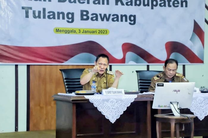 Hal itu disampaikan Pj Bupati dalam rapat koordinasi awal tahun bersama Sekdakab Ir. Anthoni, MM, Pejabat Eselon II, Kepala OPD, camat dan Lurah Pemkab Tulang Bawang, Lampung, di aula Masjid Baiturrahman Islamic Center Menggala, Selasa (03/01/2023).