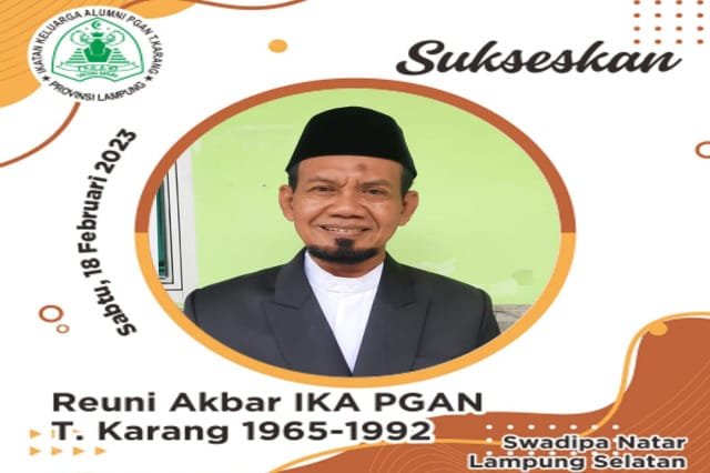 Bandarlampung, Warta9.com – Guna menjalin silaturrahim dan semangat untuk merajut ukhuwah di bulan Rajab yang penuh berkah, Ikatan Keluarga Alumni Pendidikan Guru Agama Negeri (PGAN) Tanjungkarang akan menggelar Reuni Akbar Lintas Generasi, Lintas Alumni dari alumni tahun 1965 sd 1992.
