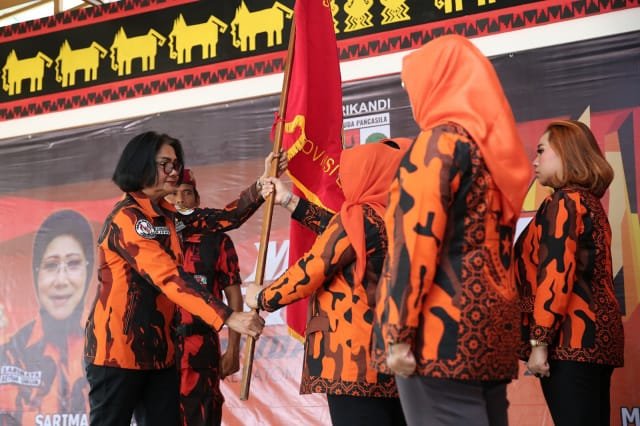 Pengukuhan Srikandi Pemuda Pancasila Provinsi Lampung yang dilaksanakan di Aula Boemi Kedaton Resort Batu Putih Telukbetung Barat Bandarlampung, Jumat (10/2/2023), dihadiri Sekdaprov Lampung Fahrizal Darminto, Ketua MPW PP Lampung Rycko Menoza, anggota DPD RI Abdul Hakim.