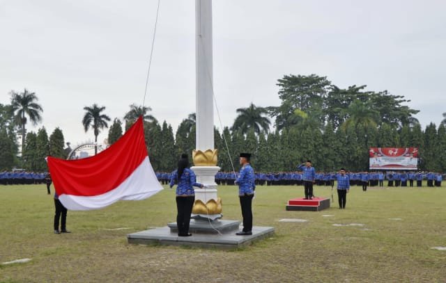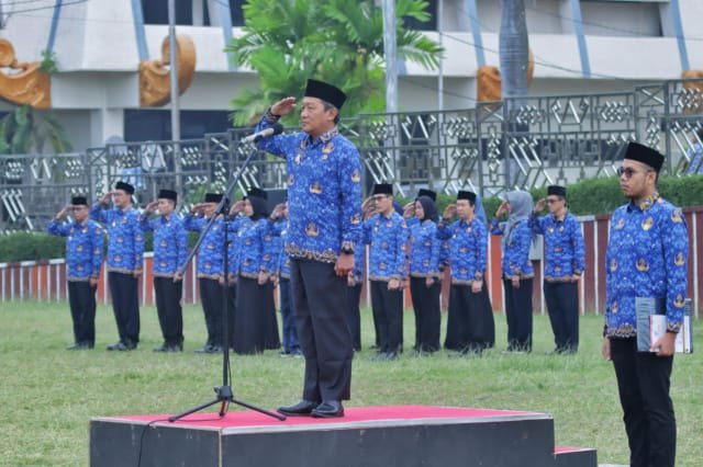 Bandarlampung, Warta9.com – Setiap tanggal 17, Pemerintah Provinsi Lampung mewajibkan seluruh ASN memakai baju seragam Korpri. Tapi, saat ini tidak hanya memakai seragam Korpri, tapi juga dilakukan upacara bendera dabungan seluruh OPD di lingkungan Pemerintah Provinsi Lampung bertempat di Lapangan Korpri, Jumat (17/02/2023).