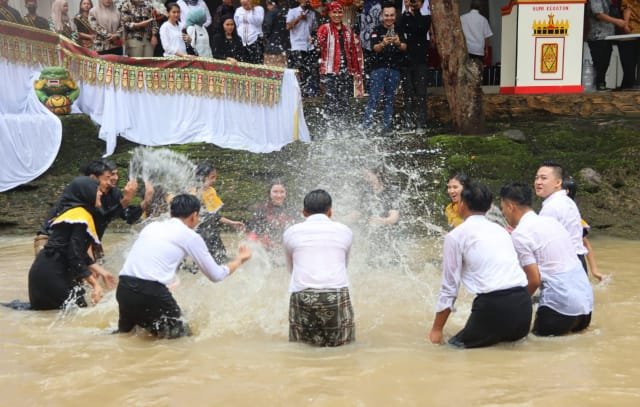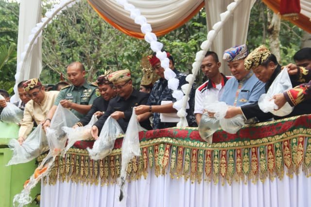 Pada kegiatan tersebut juga dilakukan penebaran benih ikan sebagai upaya menjaga kelestarian alam pada ekosistem sungai. (W9-jam)