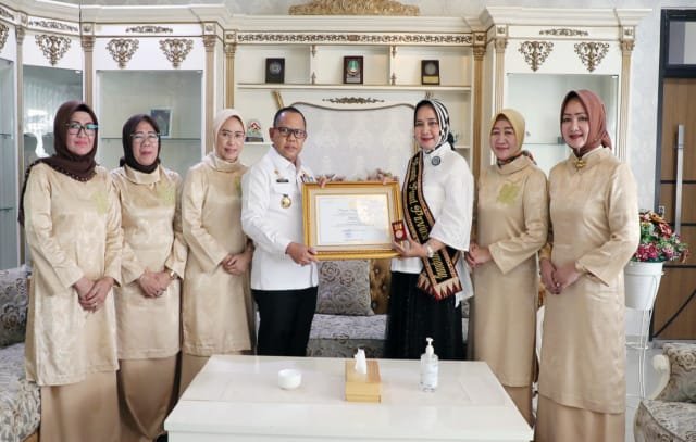 Penghargaan diterima Riana Sari Arinal di Kantor PKK Provinsi Lampung, yang diserahkan oleh Kepala Dinas Pendidikan dan Kebudayaan Lampung Drs. H. Sulpakar, MM, Rabu (5/4/2023).