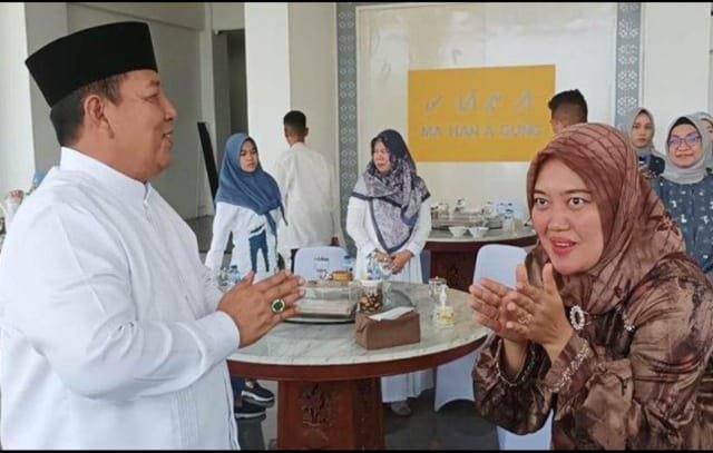 Gubernur Arinal Djunaidi dan istri Riana Sari Arinal menyalami semua tamu yang hadir bersilaturrahmi.