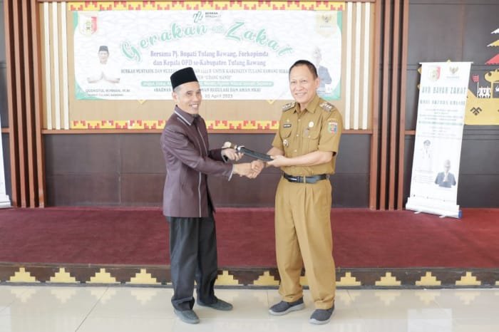 Menggala, Warta9.com – Penjabat Bupati Tulang Bawang Drs. Qudrotul Ikhwan, MM bersama Badan Amil Zakat Nasional (BAZNAS) kabupaten setempat melaksanakan Gerakan Cinta Zakat.