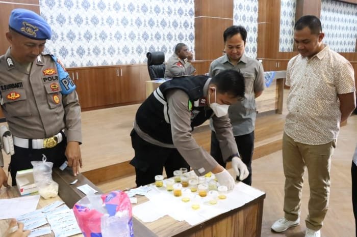 “Pengecekan urine ini diikuti Kasatres Narkoba AKP Aris Satrio Sujatmiko, Kaur Bin Ops (KBO) Satresnarkoba, Iptu Andy Ruswandy dan 17 personel Satresnarkoba,” sebut Jibrael.