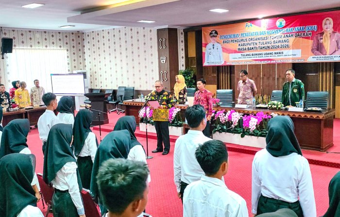 Menggala, Warta9.com – Penjabat (Pj) Bupati Tulang Bawang Ferli Yuledi kukuhkan pengurus Organisasi Forum Anak Daerah (OFAD) Kabupaten Tulang Bawang periode 2024-2026 mendatang.