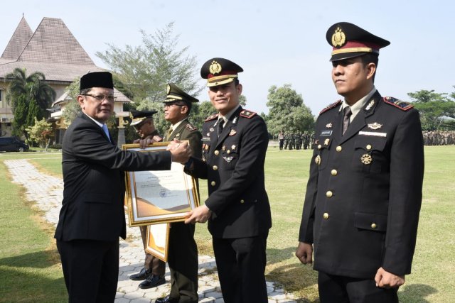 Penghargaan tersebut diserahkan saat upacara peringatan ke-79 Hari Pahlawan, yang berlangsung di Halaman Kantor Pemda Kabupaten setempat, pada Senin (25/11).