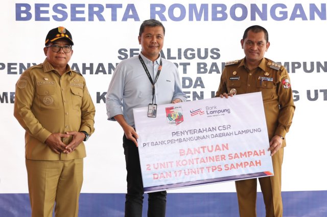 Dalam kesempatan ini, Pj Gubernur Samsudin juga menyaksikan penyerahan CSR dari Bank Lampung kepada Pemerintah Kabupaten Lampung Utara berupa bantuan 2 unit kontainer sampah dan 17 unit TPS sampah, di Kotabumi, Senin (23/12/2024).