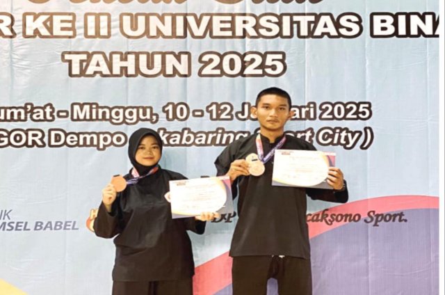 Bandarlampung, Warta9.com – Dua pesilat Universitas Teknokrat Indonesia (UTI) Reva Abdelina dan Adam Widyatamaka, meraih prestasi gemilang pada Kejuaraan Nasional Pencak Silat Piala Rektor II yang diselenggarakan Universitas Bina Dharma, Palembang, pertengahan Januari 2025.