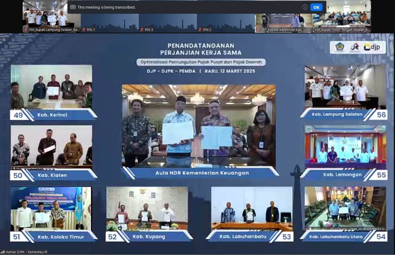 Acara penandatanganan ini dilaksanakan secara hybrid, langsung dari Aula Nagara Dana Rakca, Kantor Kementerian Keuangan, Jakarta Pusat, dan disiarkan secara serentak melalui Zoom Meeting, Rabu (12/3/2025). Sebanyak 129 pemerintah daerah turut berpartisipasi dalam penandatanganan tersebut.